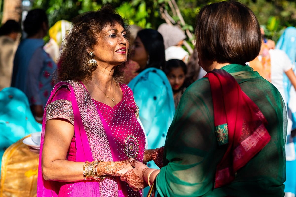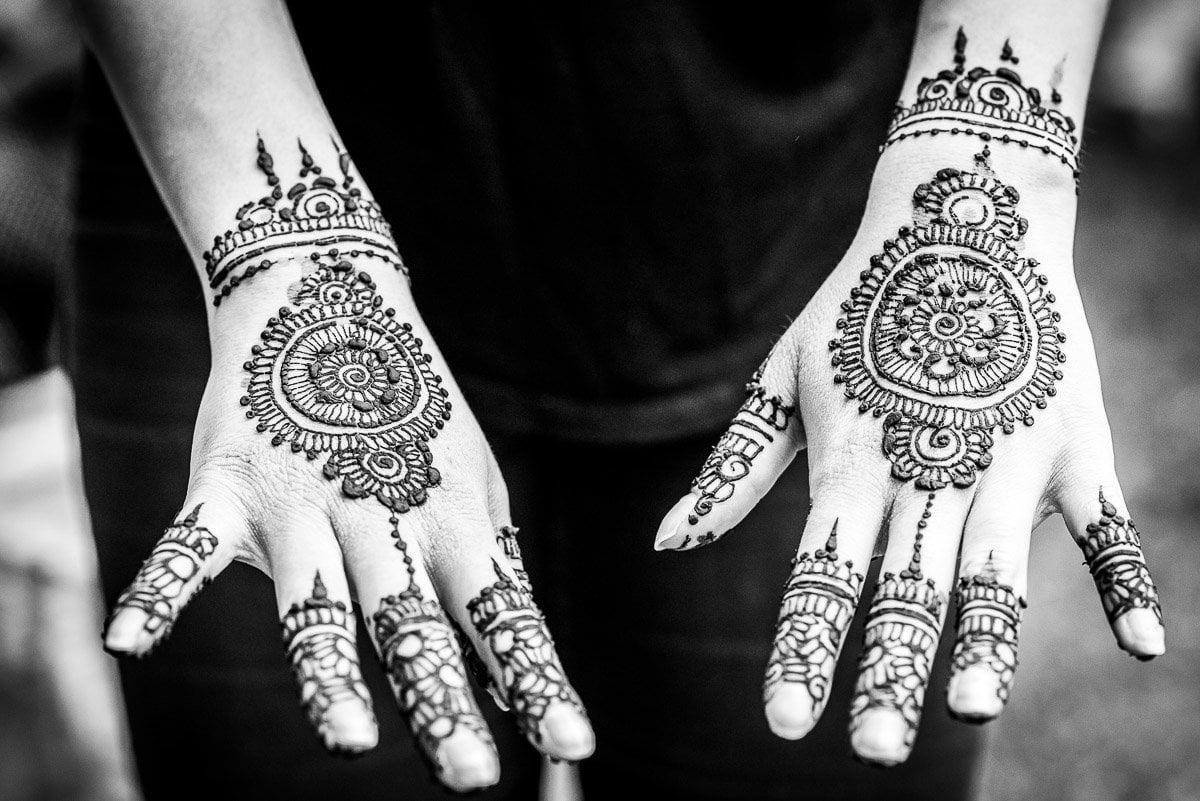 The first day was lovely and relaxed with an informal Mehndi at Sam’s parents house. There was a big family lunch on the go with his aunts and cousins involved with all the cooking and serving. At the same time there were Mehndi artists decorating all the ladies hands and feet using henna in the most lovely and intricate patterns.